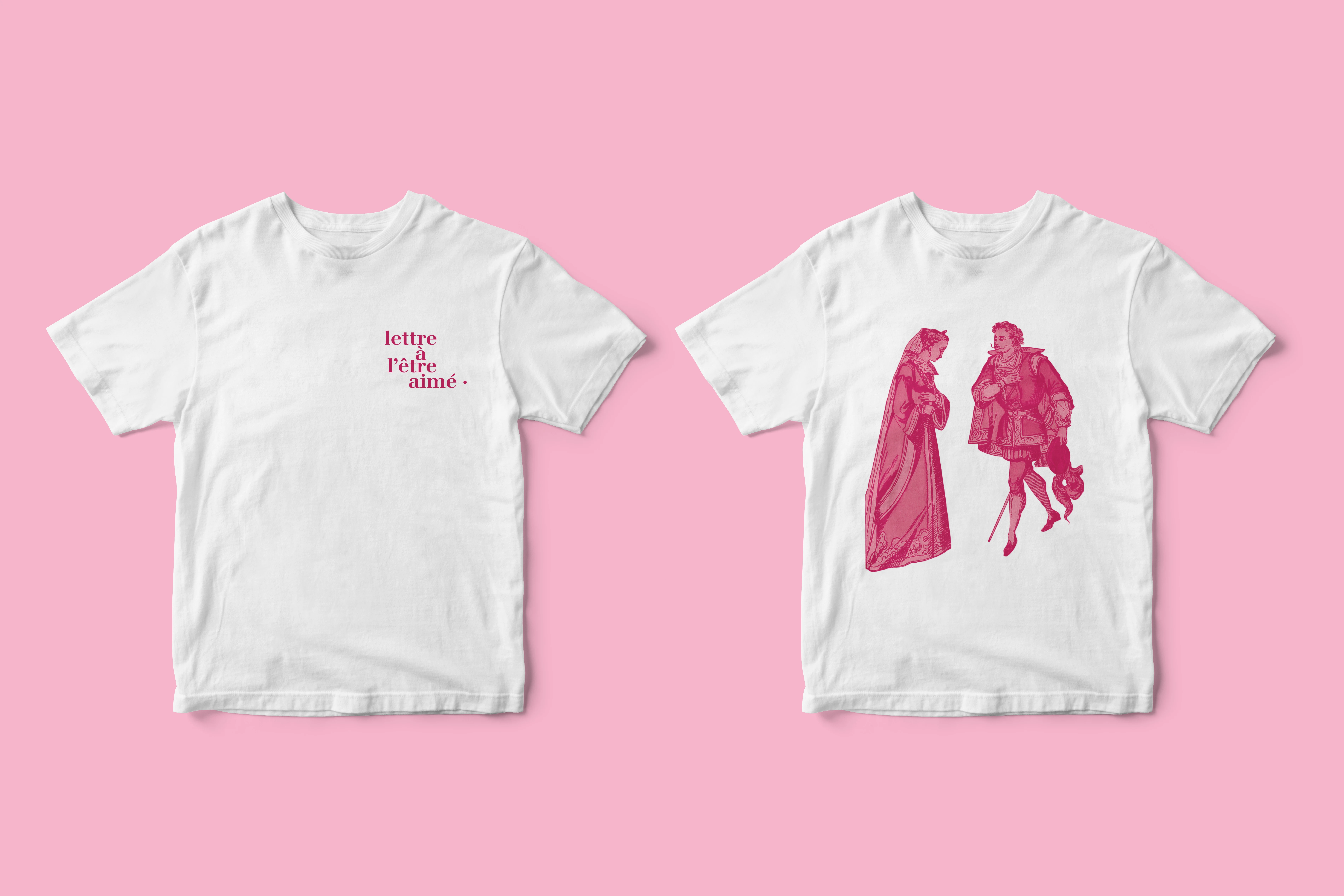 L’affiche est en bichromie avec un rose nacarat, couleur faisant référence aux joues poudrées des dames dans les sociétés européenes entre le 17e et le 19e siècle ainsi qu’à la couleur des joues qui rougissent sous l’émotion.