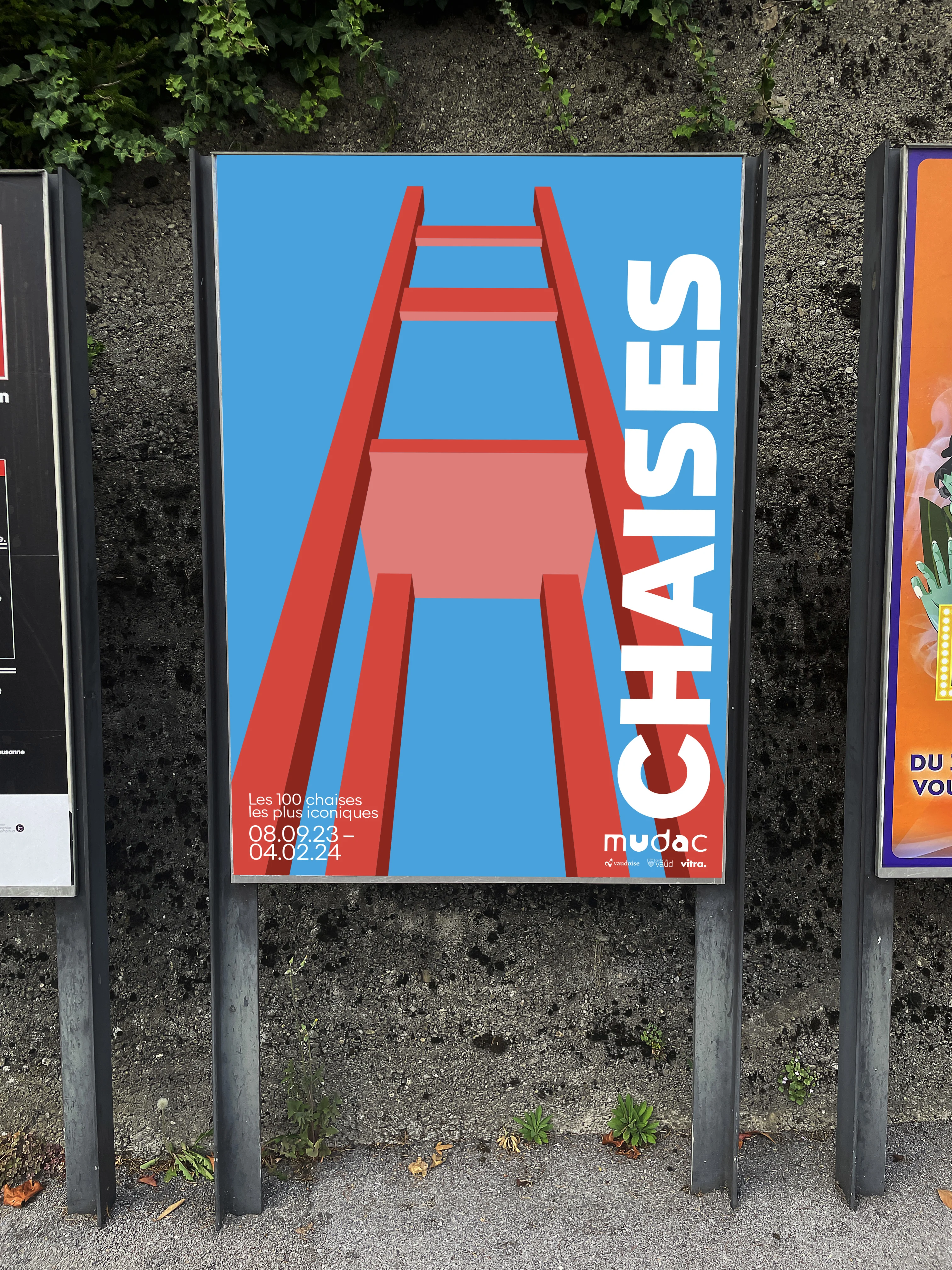 Affiche pour la promotion d'une exposition fictive de chaises iconiques issues d'une collection. L'idée est de mettre en avant une chaise classique, l'essence même de la chaise, celle qui représente toute les autres.