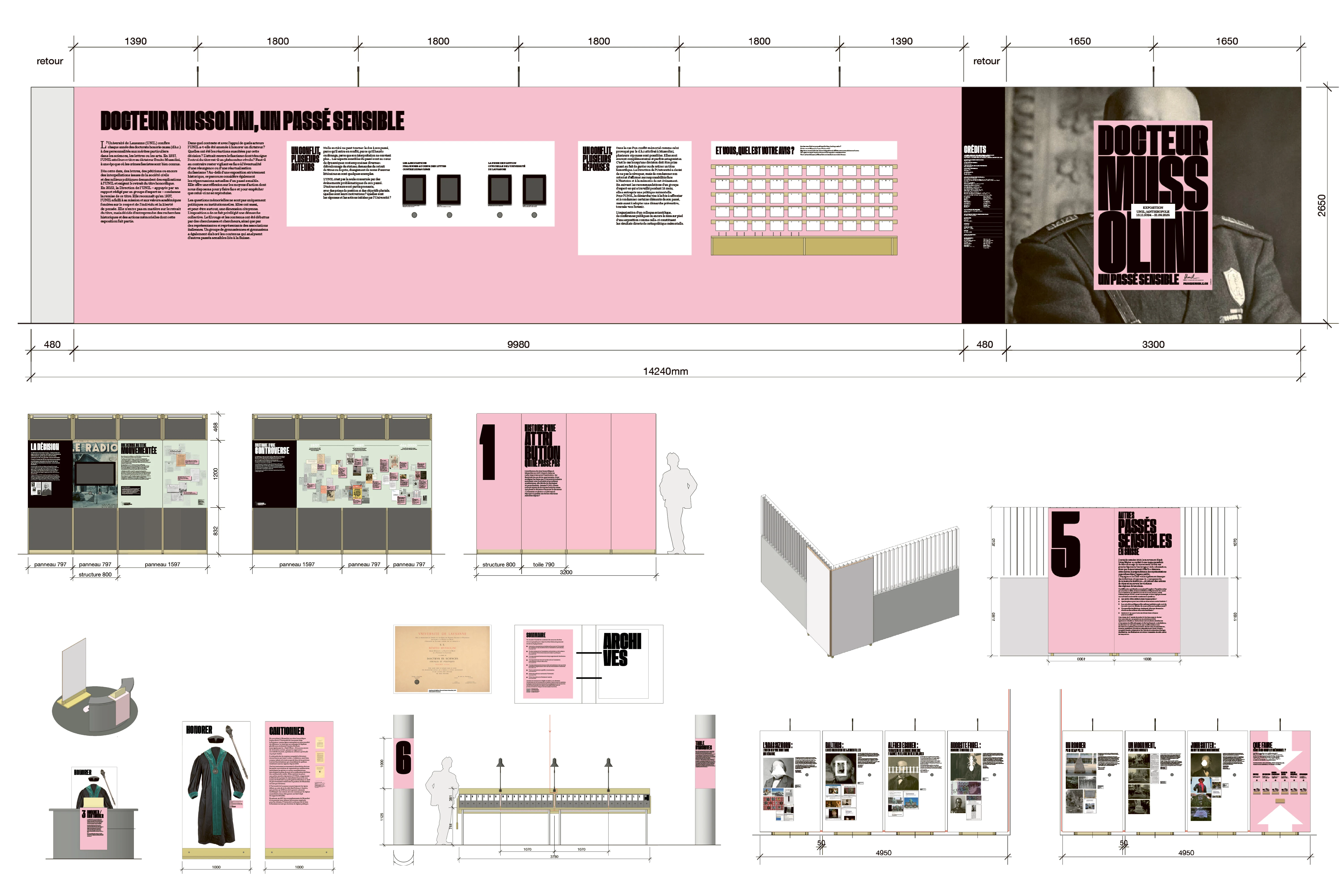 Ce projet a été réalisé durant mon stage à l’Atelier Poisson. L’exposition Docteur Mussolini, un passé sensible est organisée par l’Université de Lausanne et retrace l’histoire du doctorat honoris causa attribué à Mussolini en 1937 et de tout ce qui en